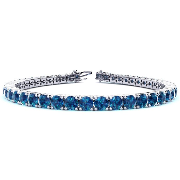 11 3/4 Carat Blue Diamond Tennis Bracelet In 14 Karat White Gold, 9 Inches