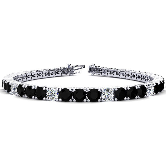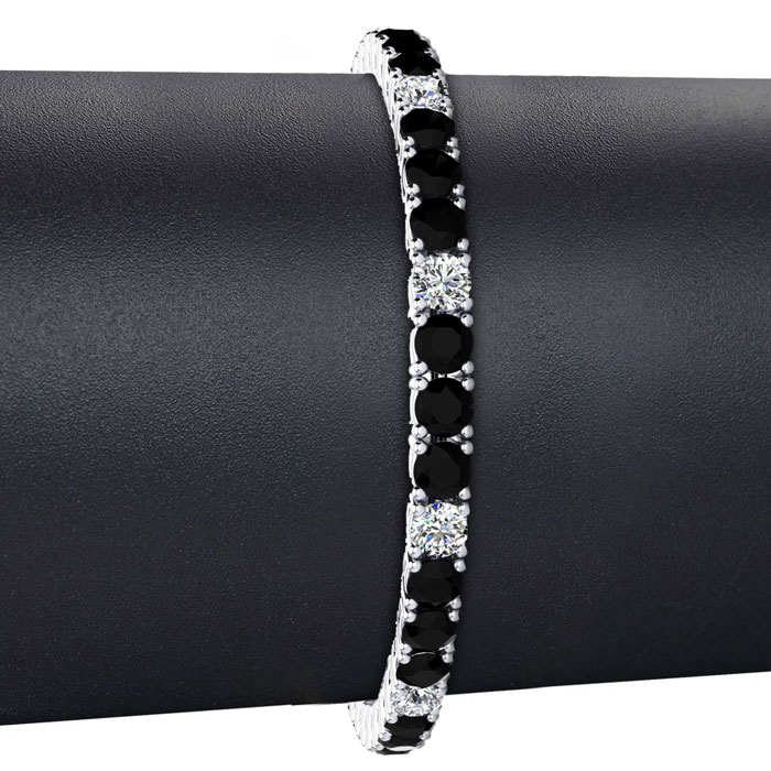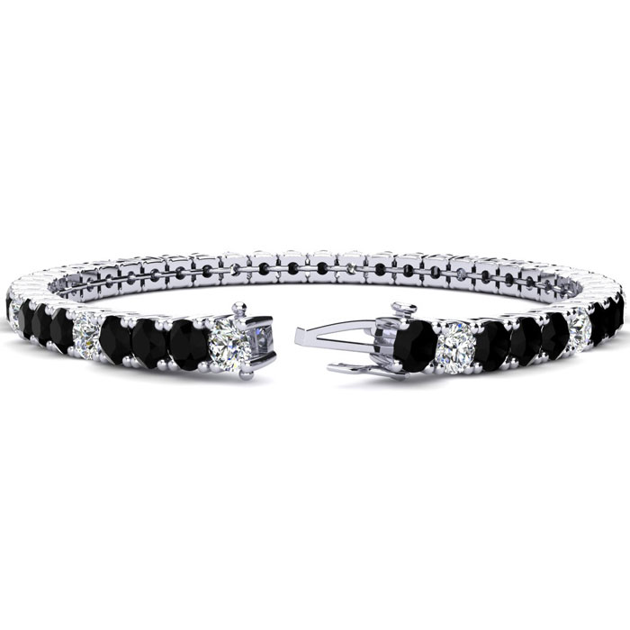11 3/4 Carat Mens Black Diamond Tennis Bracelet, White Diamond, In 14 Karat White Gold, 9 Inches