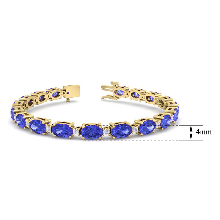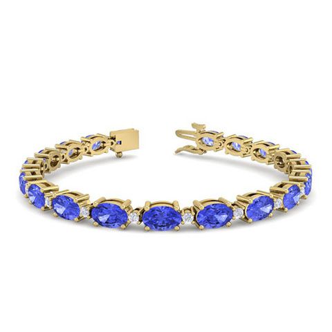 11 Carat Oval Shape Tanzanite and Diamond Bracelet In 14 Karat Yellow Gold, 7 Inches