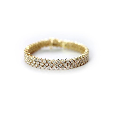 12 Carat Natural Three Row Diamond Tennis Bracelet In 14 Karat Yellow Gold