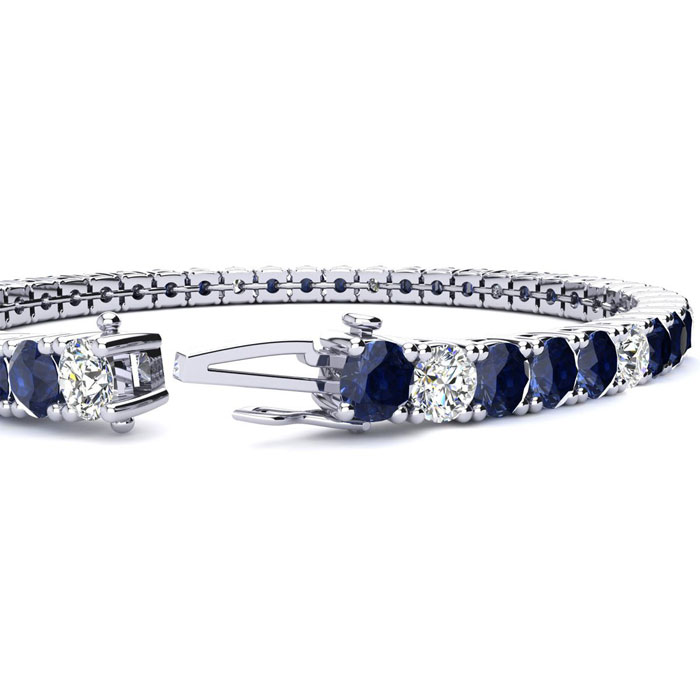 13 3/4 Carat Natural Sapphire and Diamond Alternating Mens Tennis Bracelet In 14 Karat White Gold, 8 Inches