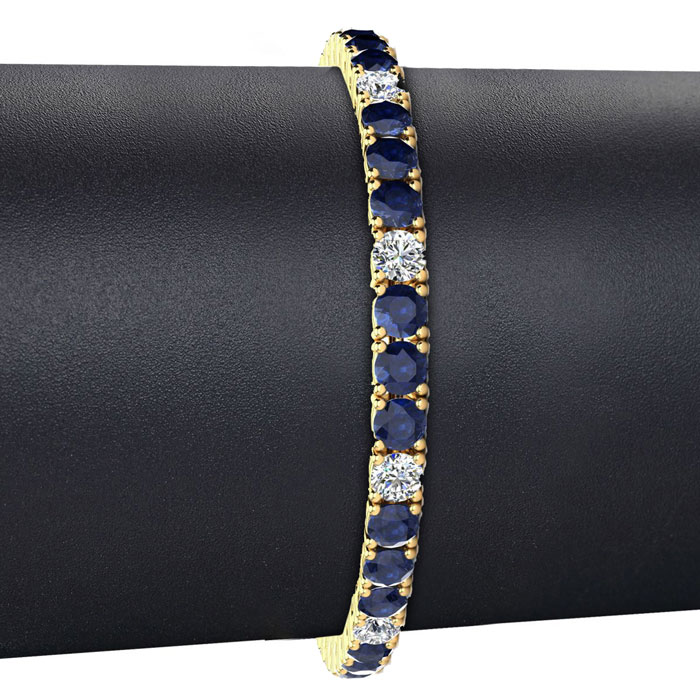 14 1/2 Carat Natural Sapphire and Diamond Alternating Mens Tennis Bracelet In 14 Karat Yellow Gold, 8 1/2 Inches