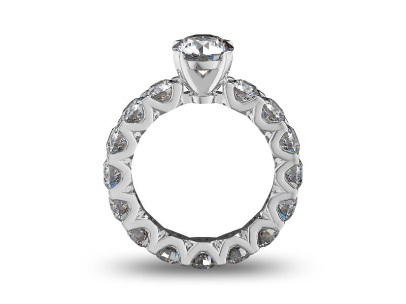 14 Karat White Gold 5 1/2 Carat Natural Diamond Eternity Engagement Ring With 1 1/2 Carat Natural Round Brilliant Center