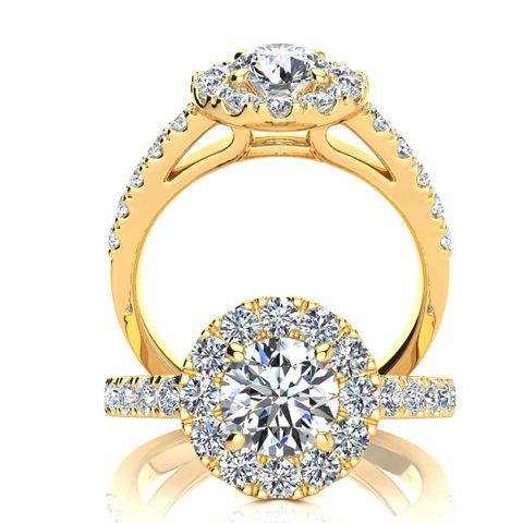 14 Karat Yellow Gold 1 1/3 Carat Natural Classic Round Halo Diamond Engagement Ring