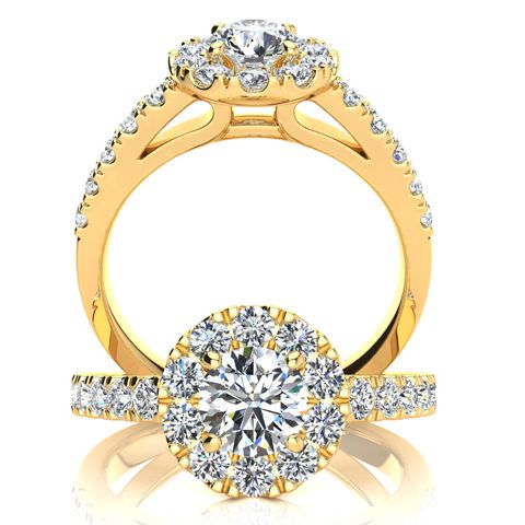 14 Karat Yellow Gold 1 Carat Natural Classic Round Halo Diamond Engagement Ring