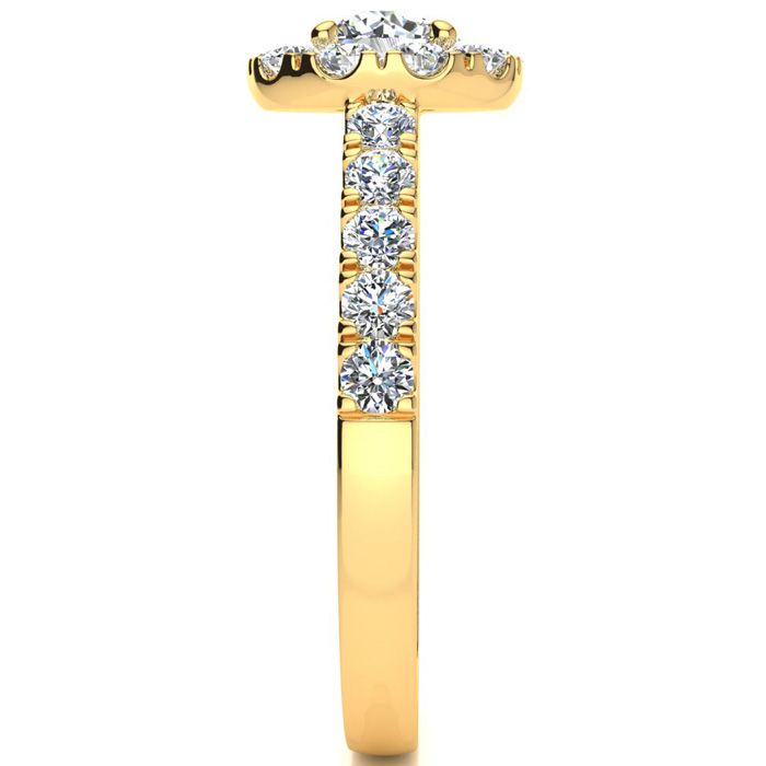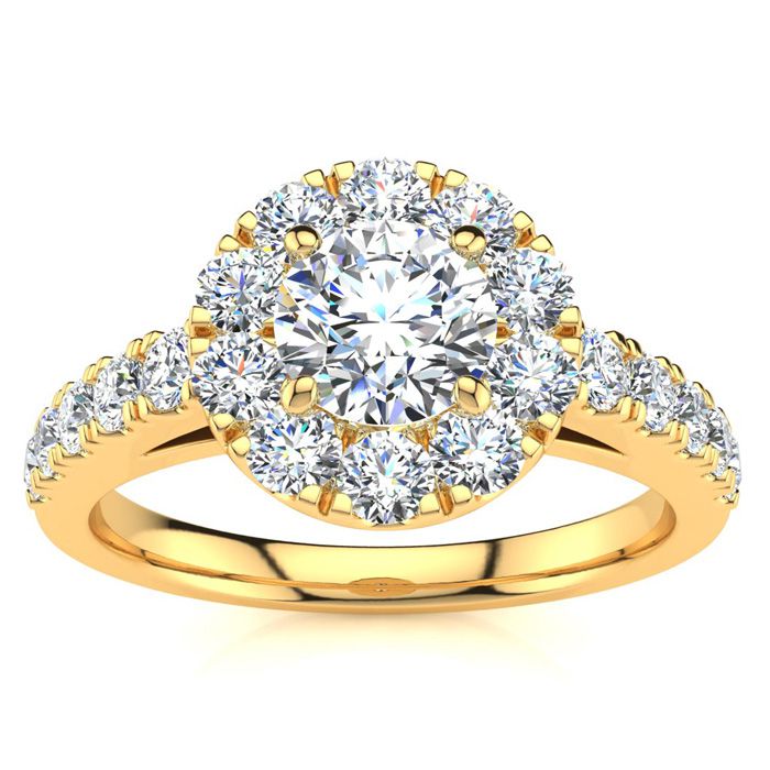 14 Karat Yellow Gold 1 Carat Natural Classic Round Halo Diamond Engagement Ring