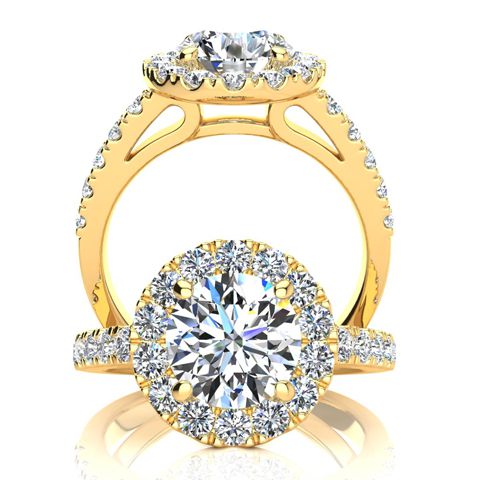 14 Karat Yellow Gold 2 1/4 Carat Natural Classic Round Halo Diamond Engagement Ring