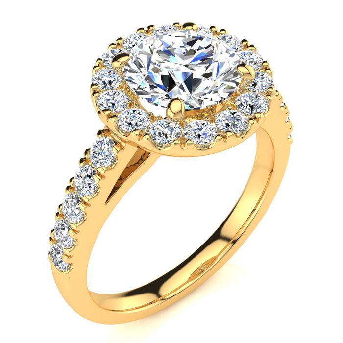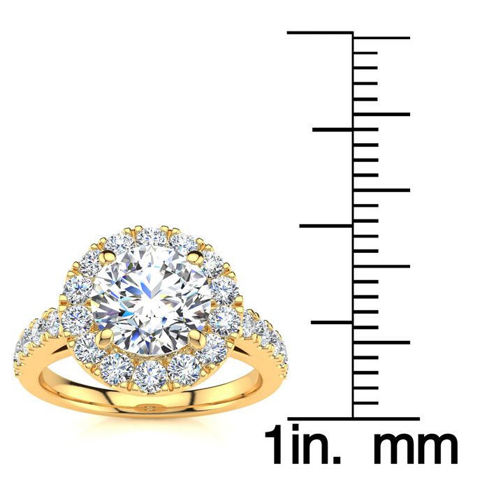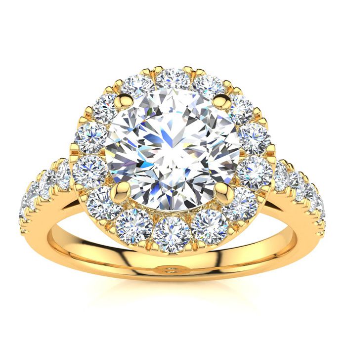 14 Karat Yellow Gold 2 1/4 Carat Natural Classic Round Halo Diamond Engagement Ring