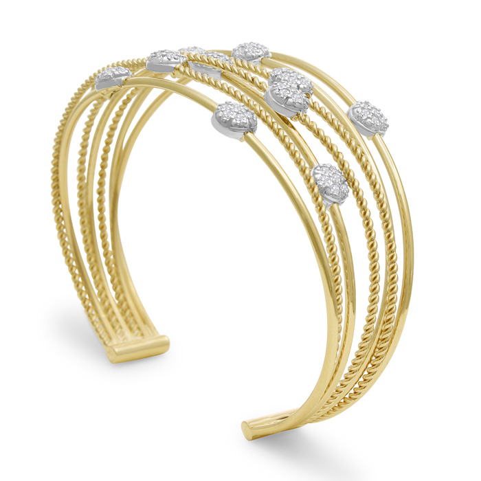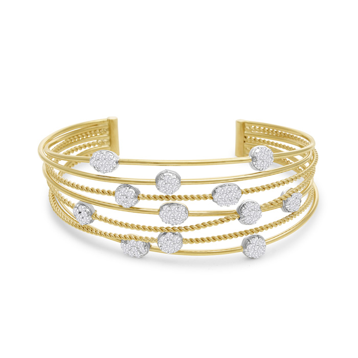 14 Karat Yellow Gold 2 Carat Pave Diamond Cuff Bangle Bracelet