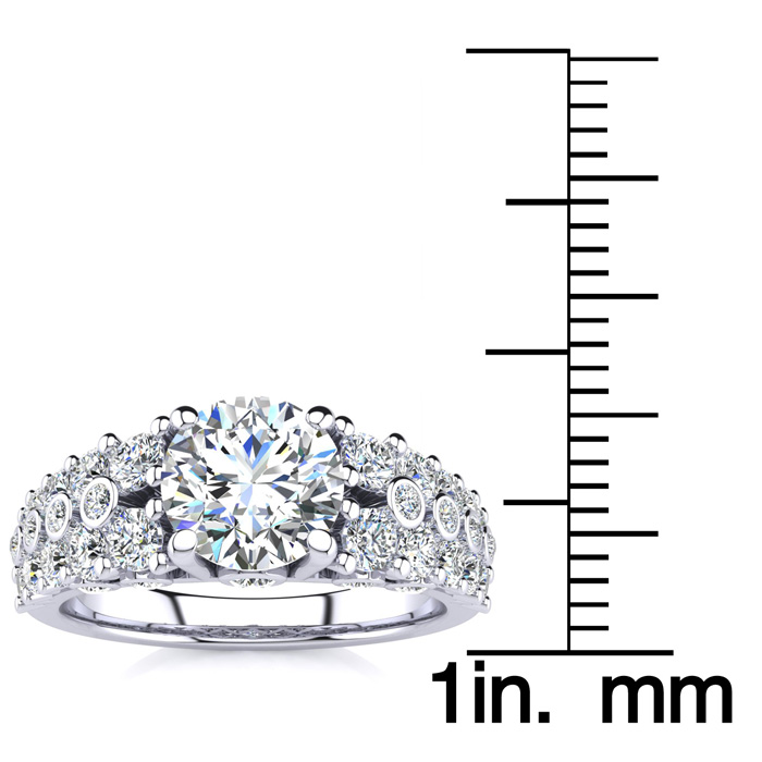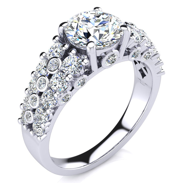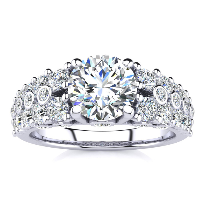This gorgeous diamond engagement ring features a stunning 1.25 carat center diamond. It is surrounded by 38 sparkling diamonds all in H-I color, SI2-I1 clarity. Ring is crafted in 14 karat white gold. Total carat weight is 2.35 carats.