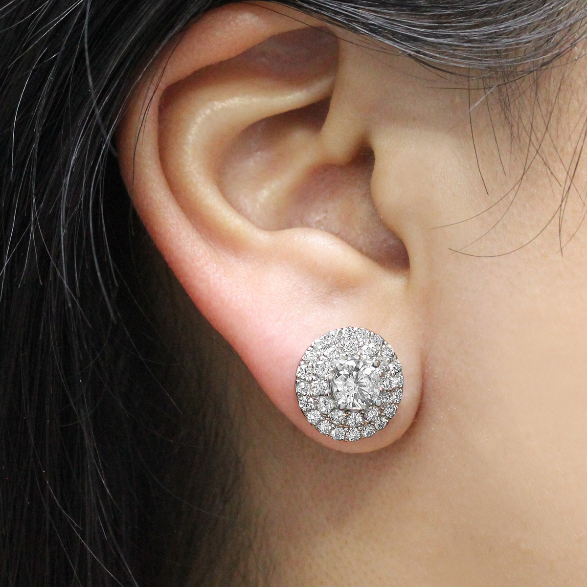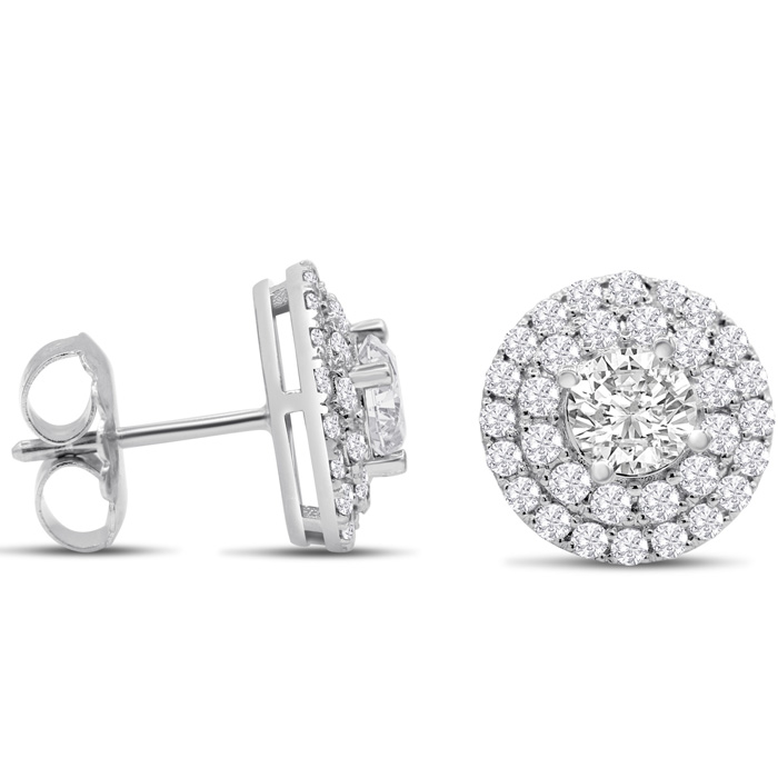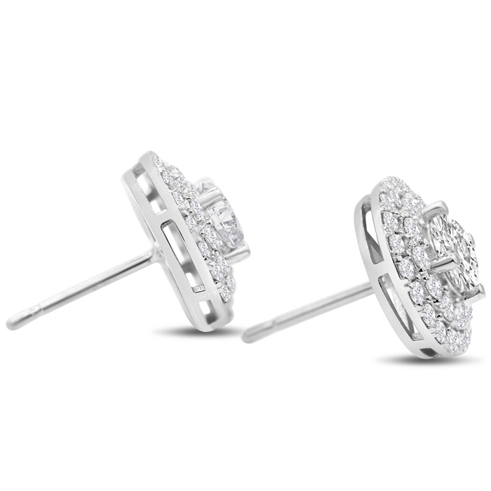 14K White Gold 3 Carat Diamond Halo Stud Earrings
