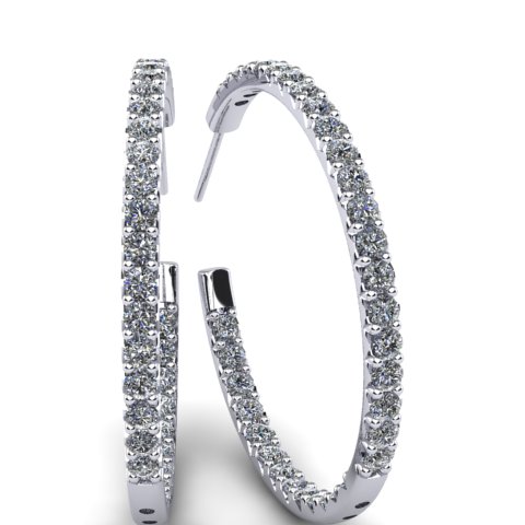 14K White Gold 3 Carat Natural Diamond Three Quarter Hoop Earrings