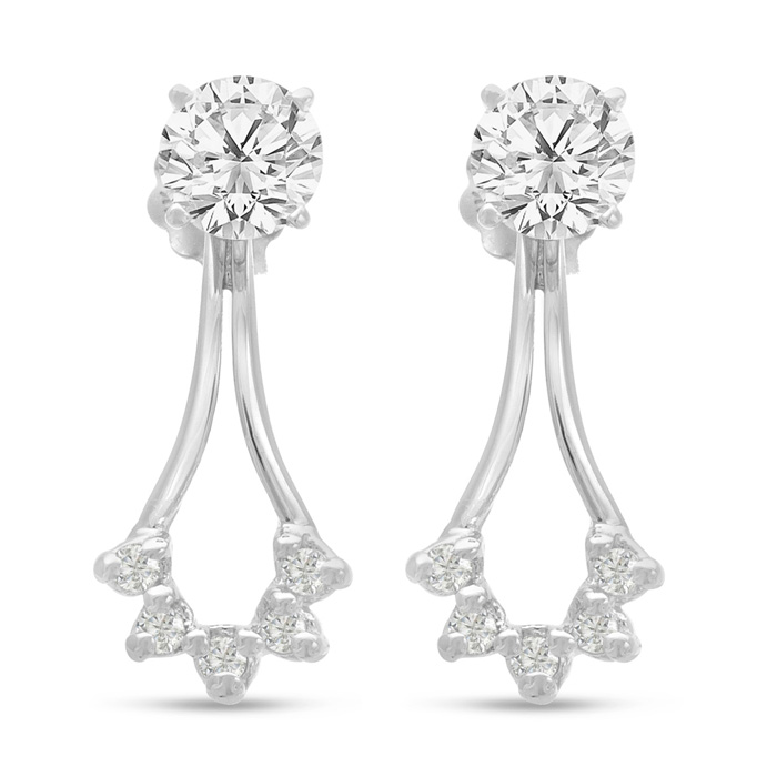 Beautiful 14K white gold cluster diamond earring jackets. These jackets can hold any size stud earring. Jackets contain 0.15ct of diamonds in G-H color, I1-I2 clarity. Jackets dangle about 3/4 inch down. Jackets contain 10 diamonds total.