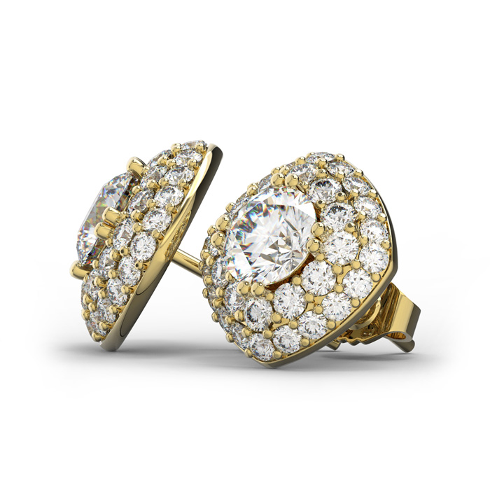 14K Yellow Gold 3 Carat Diamond Cushion Shape Halo Stud Earrings
