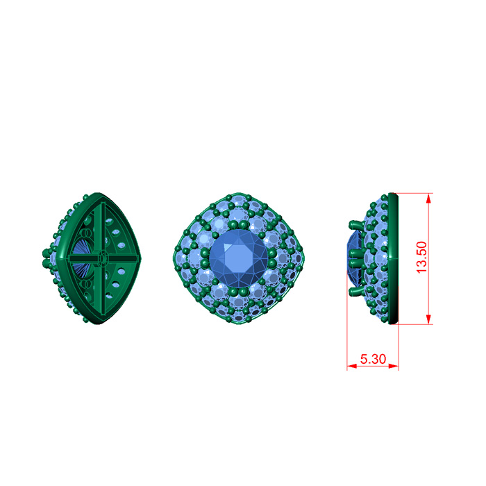 These 3 carat diamond earrings are a showstopper. The diamonds are arranged in a cushion shape which adds even more elegance. Earrings feature 66 sparkling diamonds in I-J color, SI2-I1 clarity. Total carat weight is 3.02 carats. Each earring measures just over 1/2 inch and are in 14 karat yellow gold with secure screwbacks. The center diamond in each earring is 3/4ct.