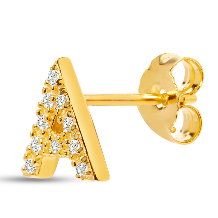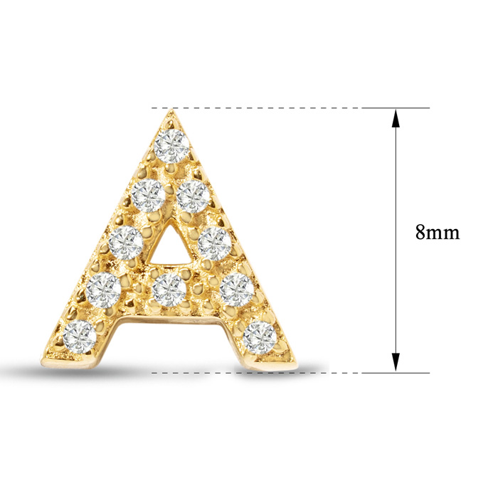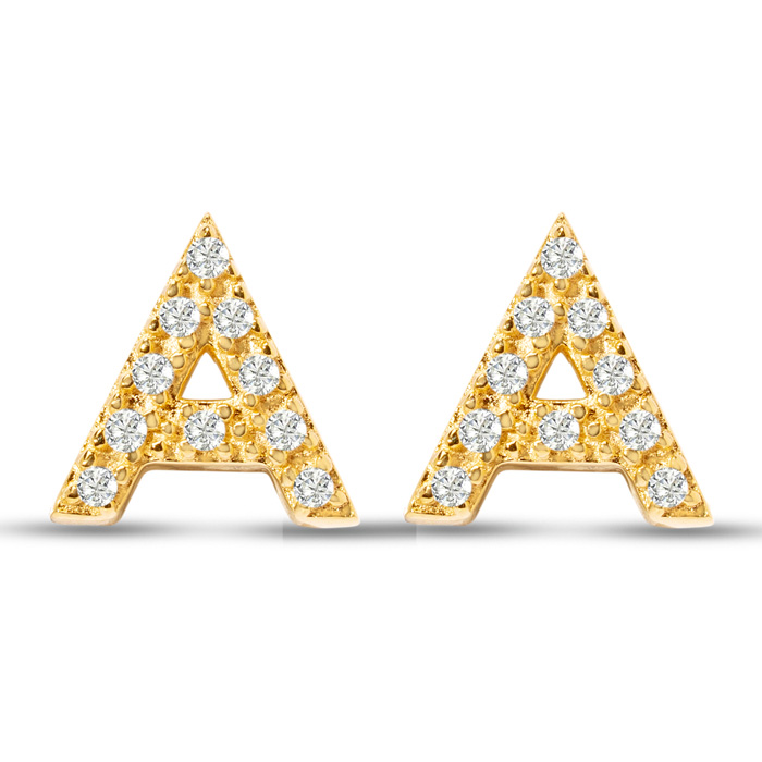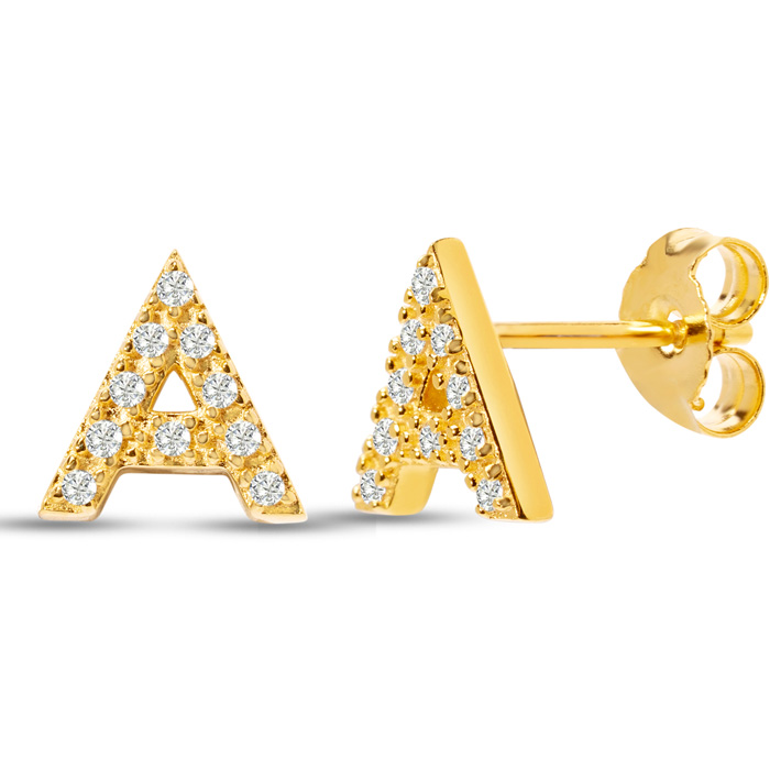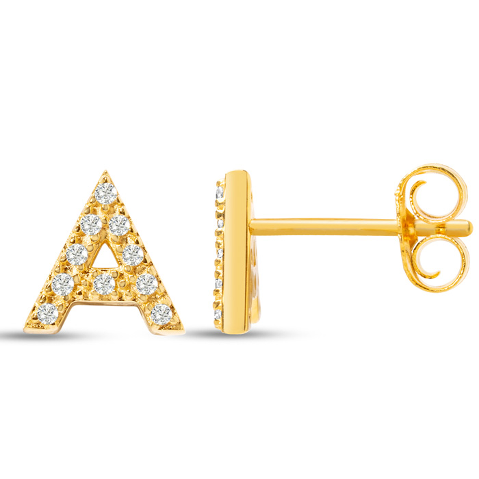 1/10 Carat Natural Diamond Letter A Initial Earrings In 14K Yellow Gold Over Sterling Silver