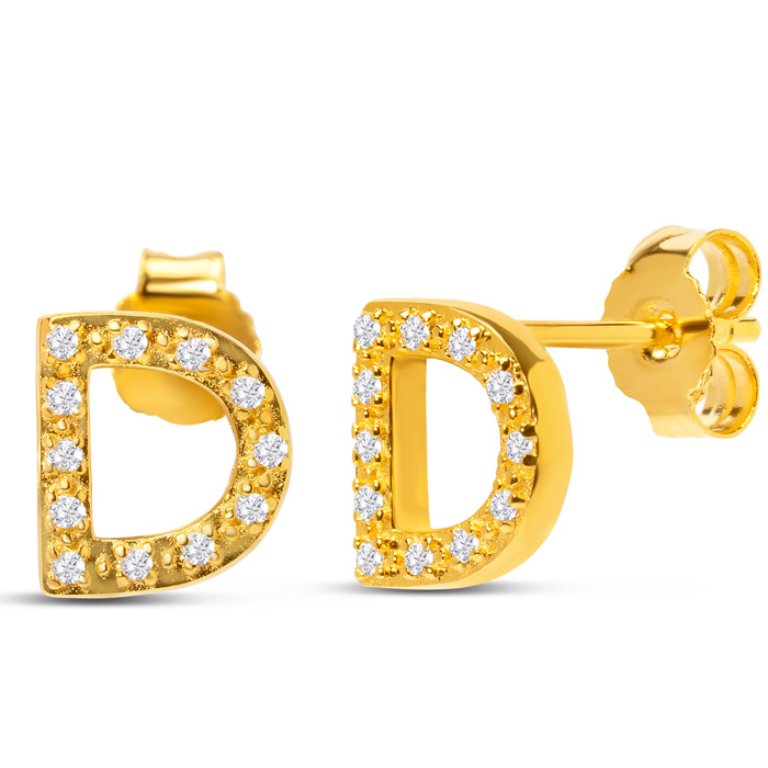 1/10 Carat Natural Diamond Letter D Initial Earrings In 14K Yellow Gold Over Sterling Silver