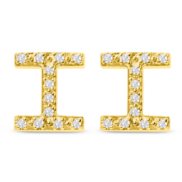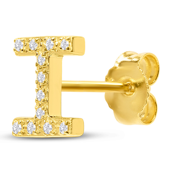 1/10 Carat Natural Diamond Letter I Initial Earrings In 14K Yellow Gold Over Sterling Silver