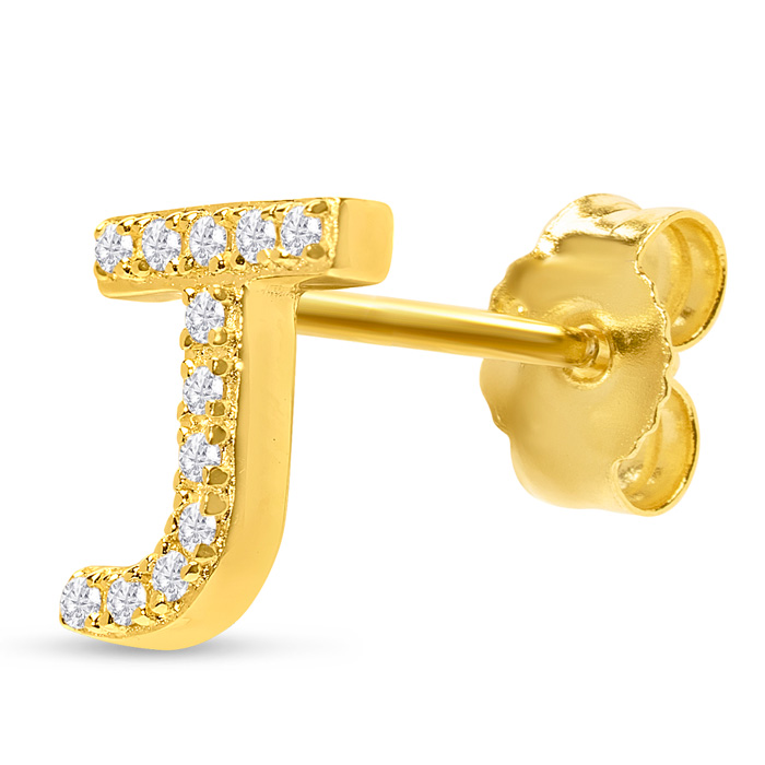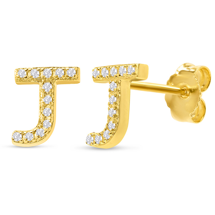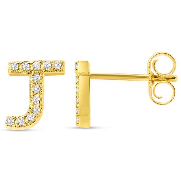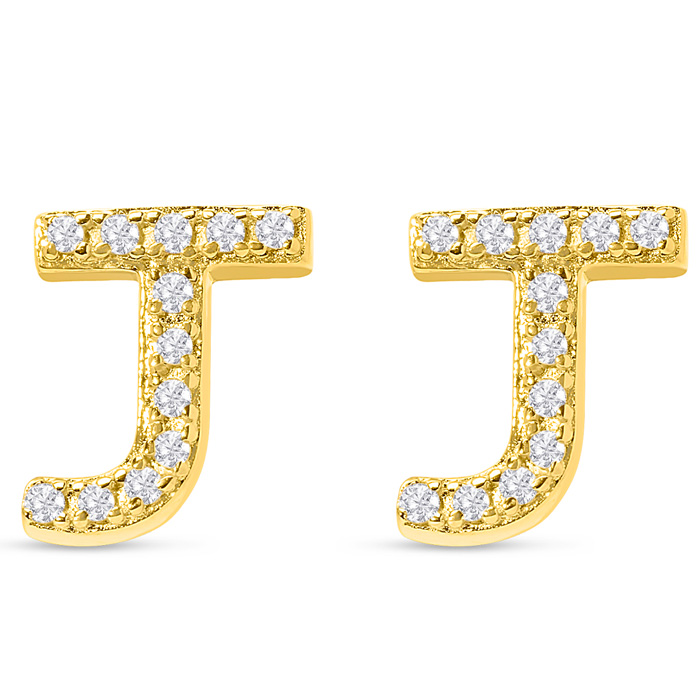 1/10 Carat Natural Diamond Letter J Initial Earrings In 14K Yellow Gold Over Sterling Silver