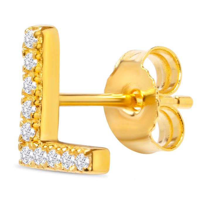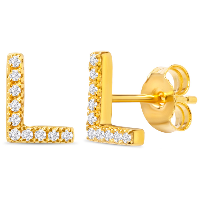 1/10 Carat Natural Diamond Letter L Initial Earrings In 14K Yellow Gold Over Sterling Silver