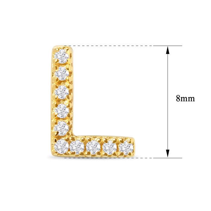 These diamond initial stud earrings feature 18-26 sparkling natural diamonds in H-I color, SI2-I1 clarity weighing 1/10 carat. All letters are available. Each earring measures approximately 1/4 inch. These earrings are available in sterling silver and 14k yellow gold over sterling silver and have comfortable and secure post with friction backs.