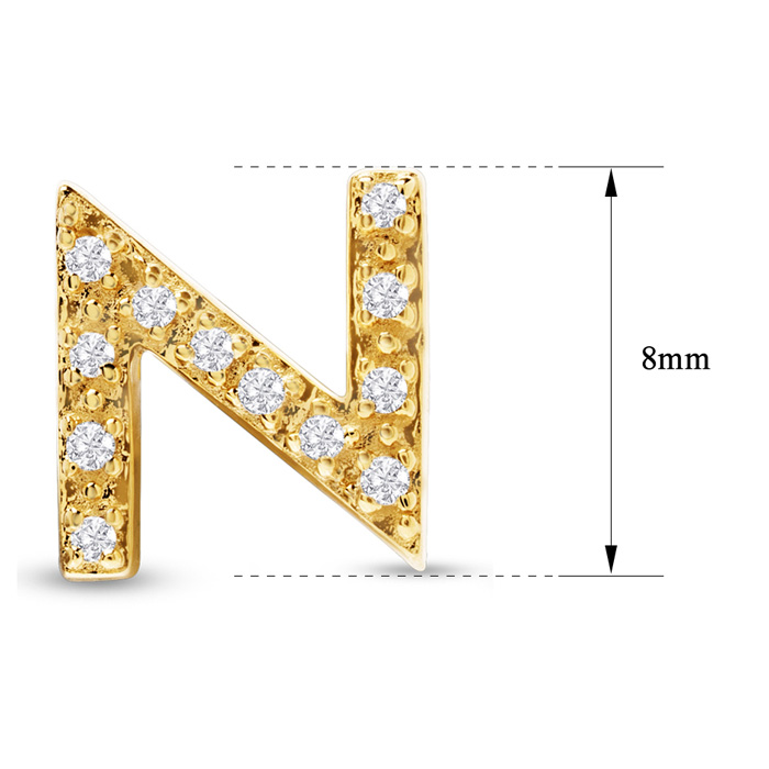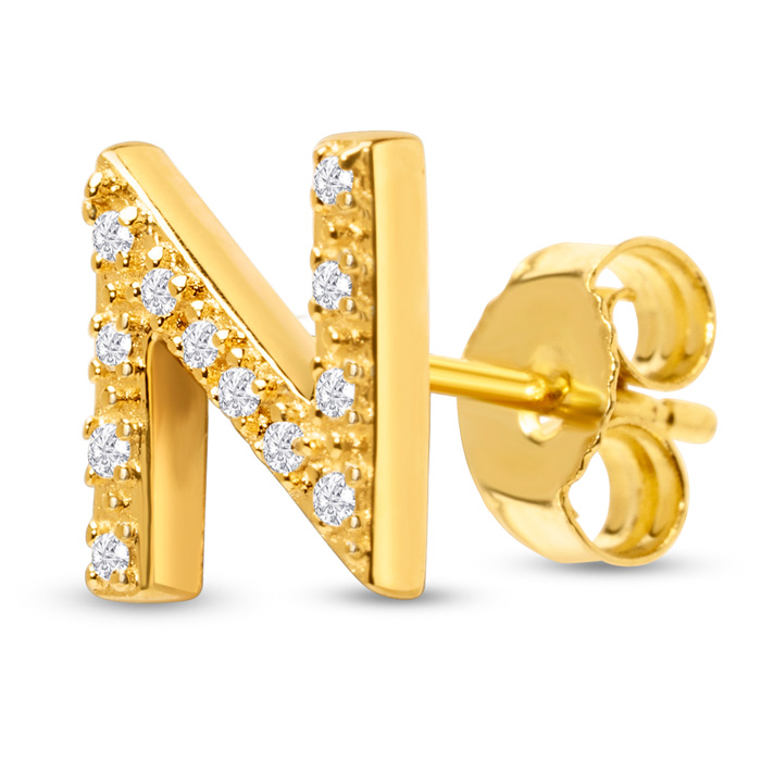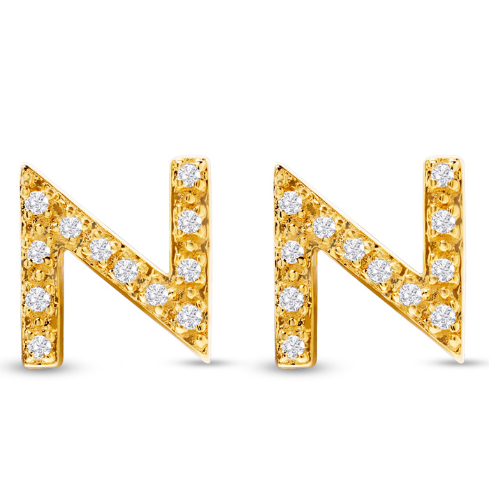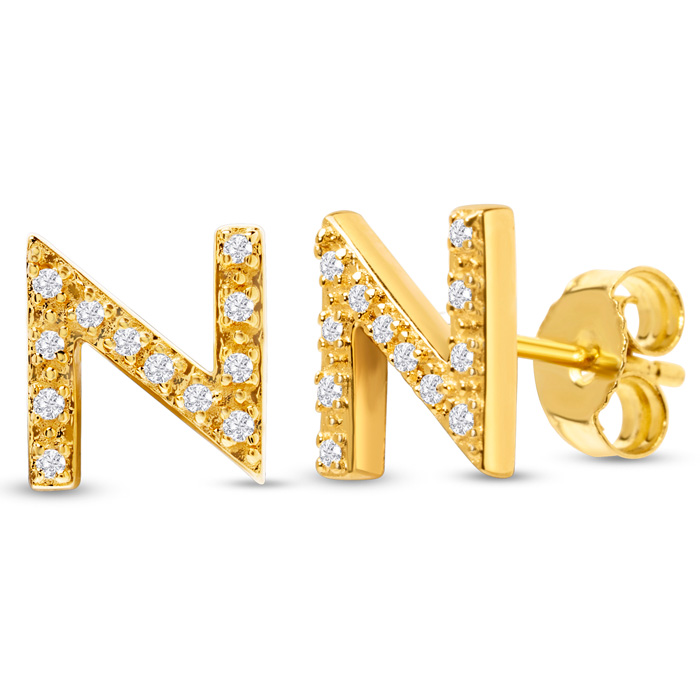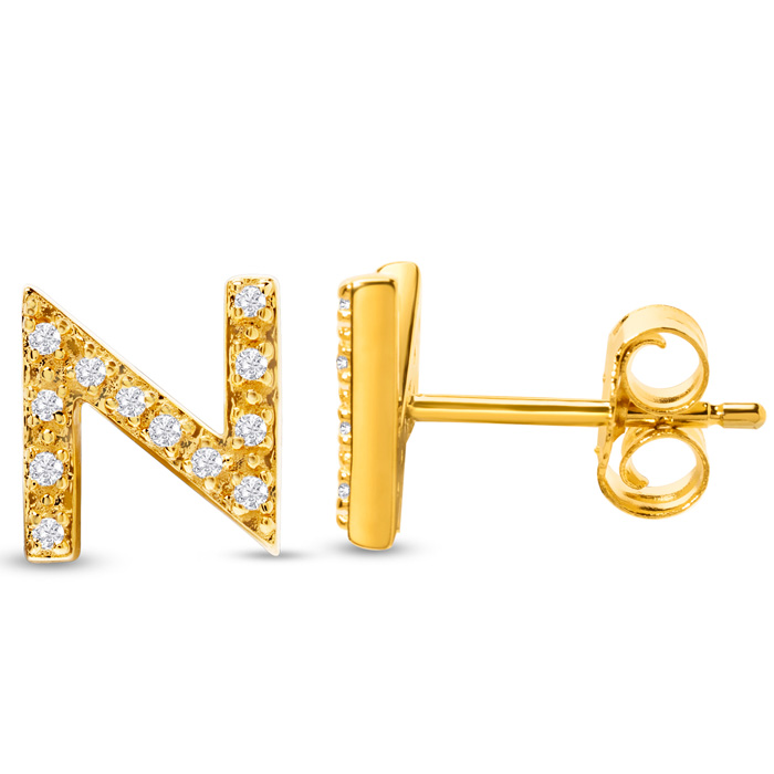 1/10 Carat Natural Diamond Letter N Initial Earrings In 14K Yellow Gold Over Sterling Silver
