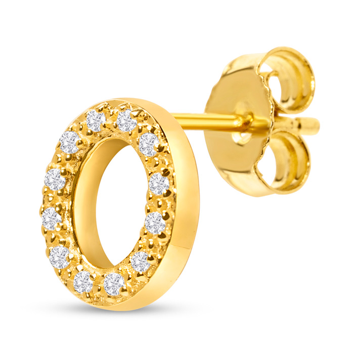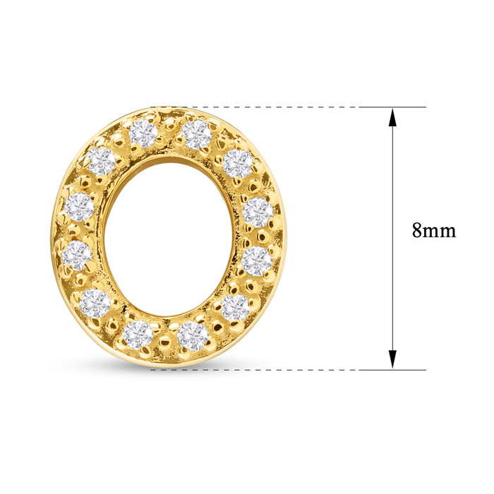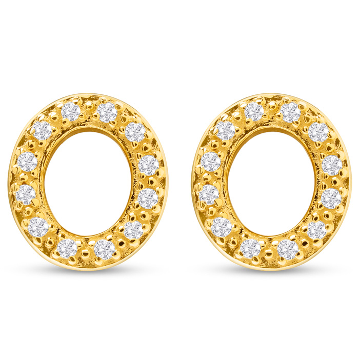 1/10 Carat Natural Diamond Letter O Initial Earrings In 14K Yellow Gold Over Sterling Silver