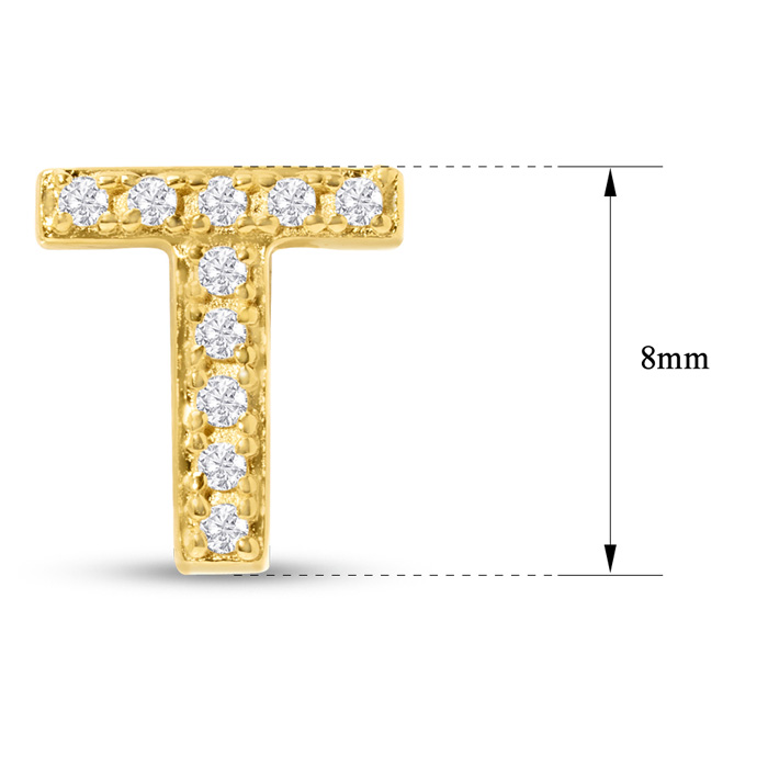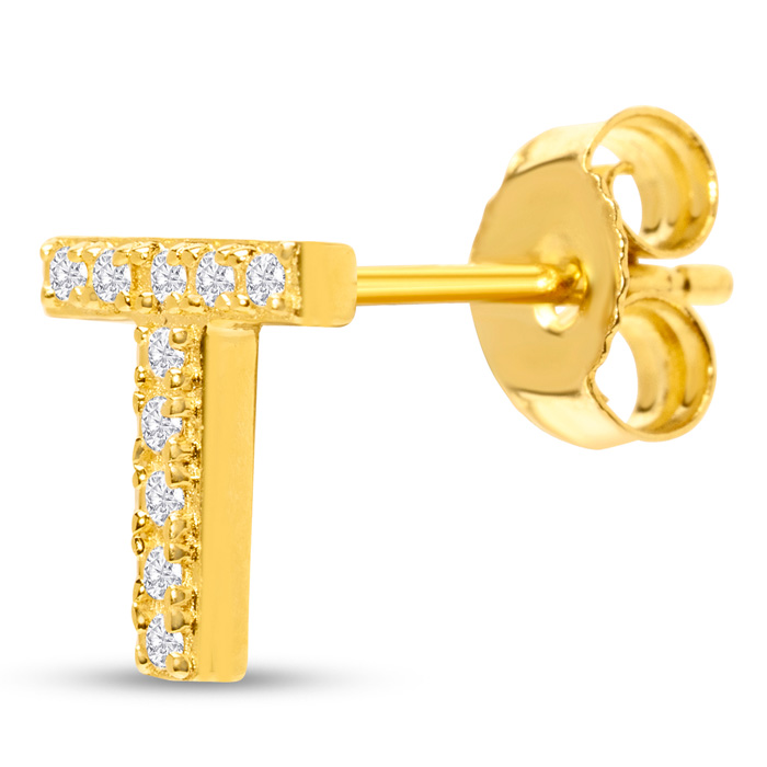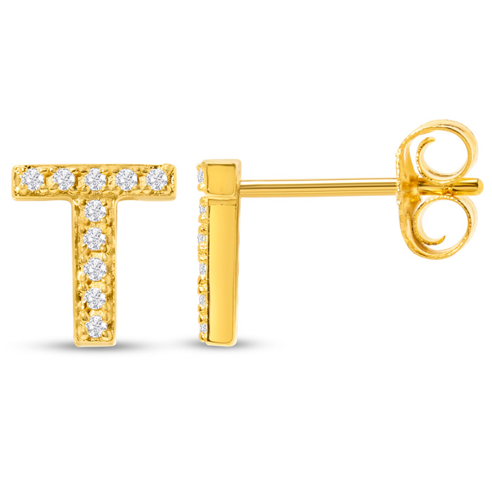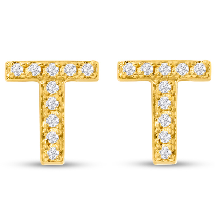 1/10 Carat Natural Diamond Letter T Initial Earrings In 14K Yellow Gold Over Sterling Silver