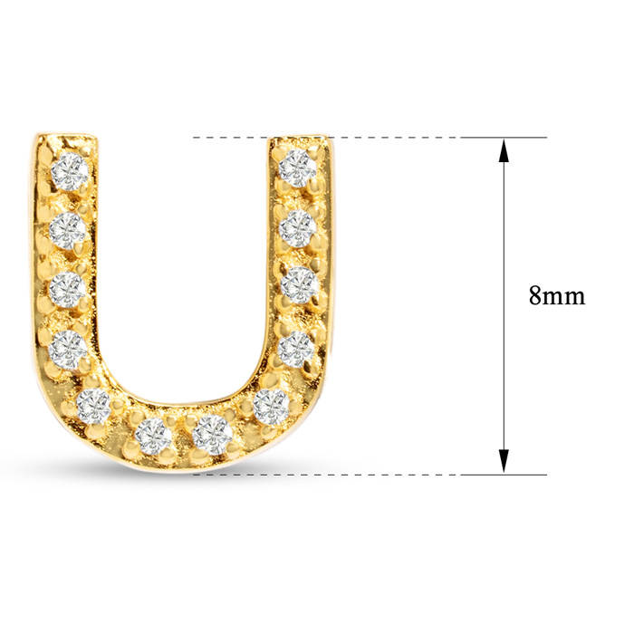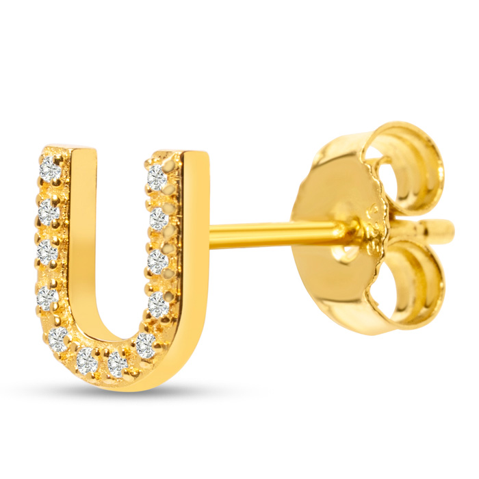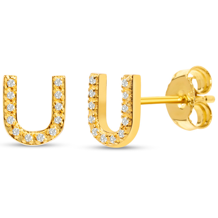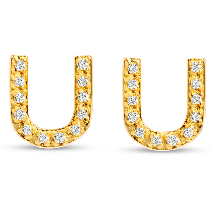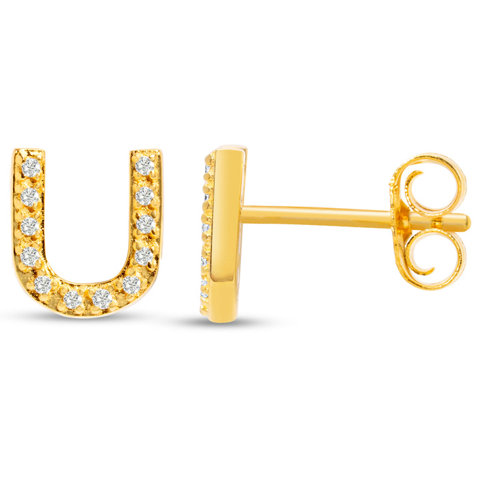 1/10 Carat Natural Diamond Letter U Initial Earrings In 14K Yellow Gold Over Sterling Silver