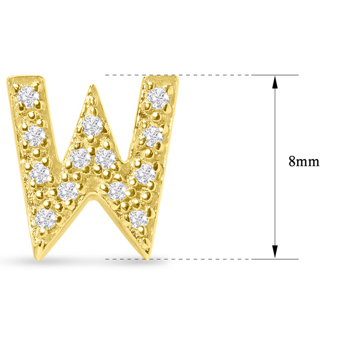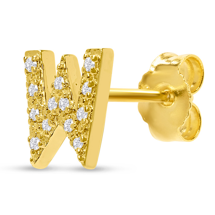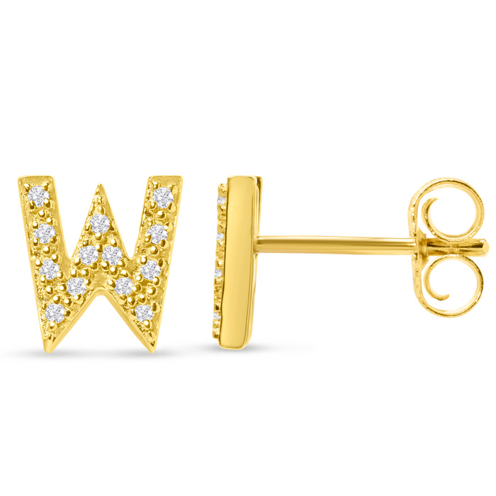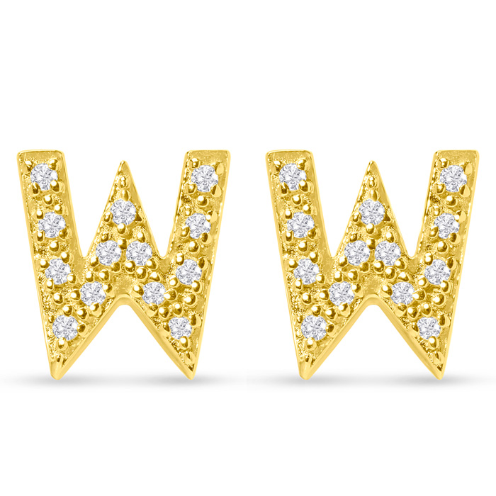1/10 Carat Natural Diamond Letter W Initial Earrings In 14K Yellow Gold Over Sterling Silver