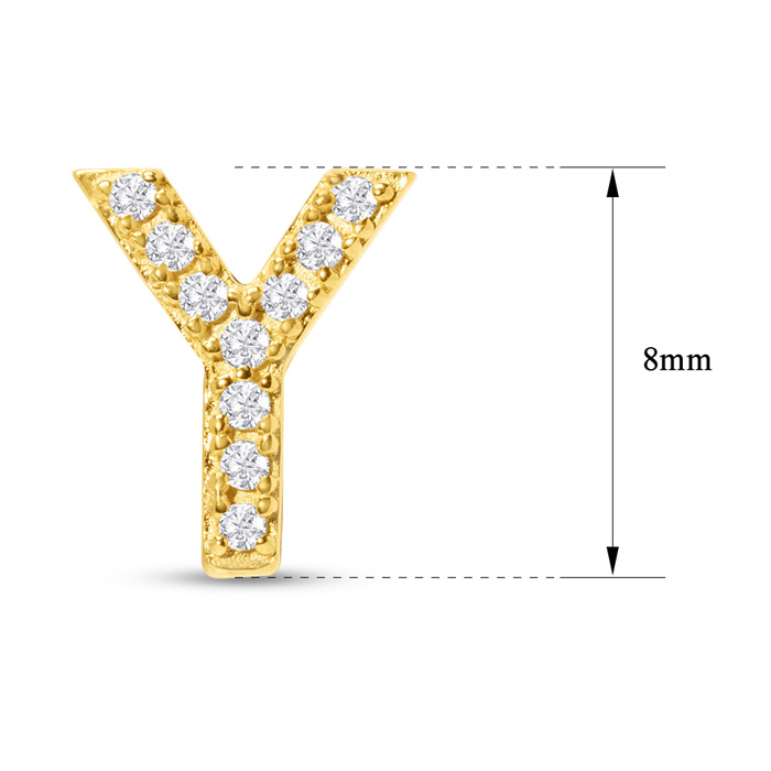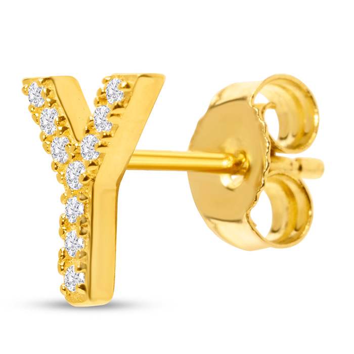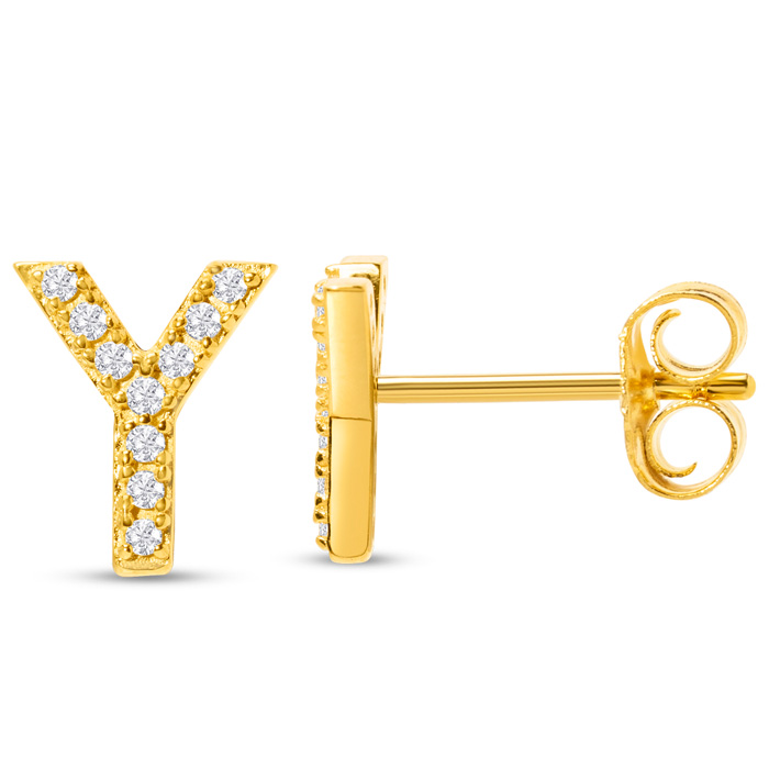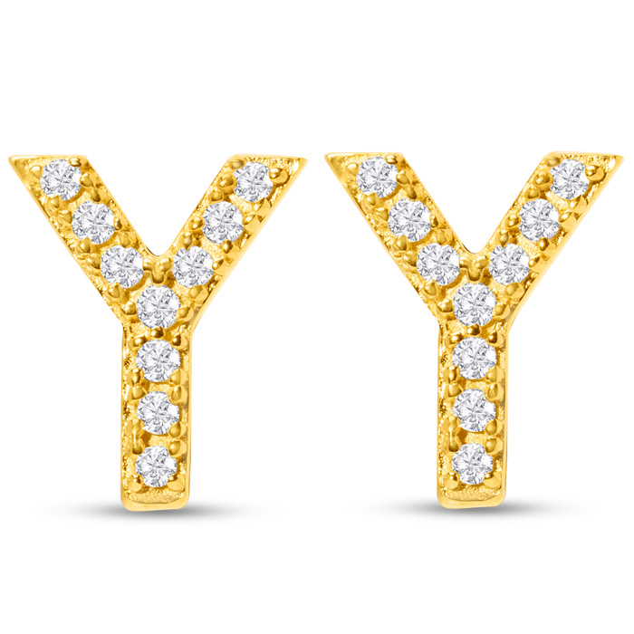 1/10 Carat Natural Diamond Letter Y Initial Earrings In 14K Yellow Gold Over Sterling Silver
