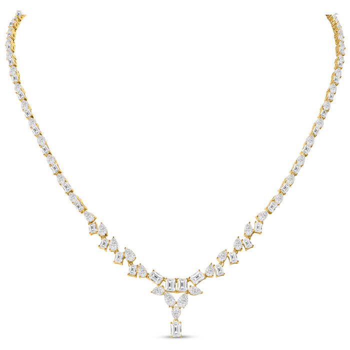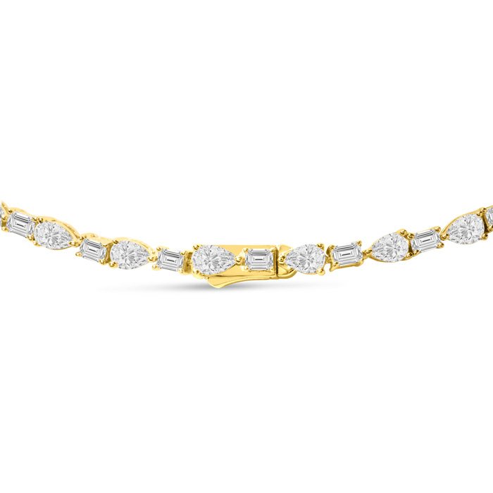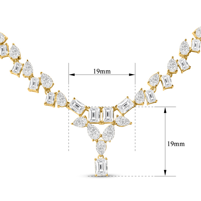 15 Carat Fancy Shape Lab Grown Diamond Tennis Necklace With Drop In 14K Yellow Gold, 16 Inches