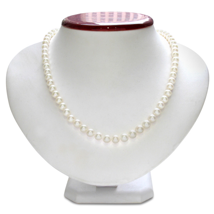 This classic hand-knotted 6mm pearl necklace is 18 inches long, with a sterling silver fancy clasp. Necklace features A quality cultured pearls.