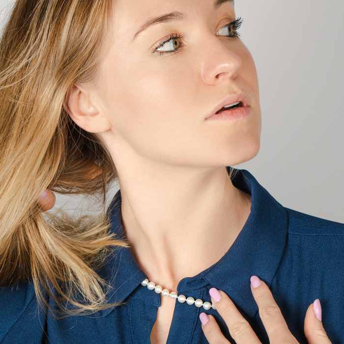 This classic hand-knotted 7mm pearl necklace is 18 inches long, with a sterling silver fancy clasp. Necklace features A quality cultured pearls. *Retrograde Birthstones™ flips the idea of traditional birthstones. Wear your ½ birthday birthstone, your Retrograde Birthstone, “The Birthstone For Your Bad Side™.