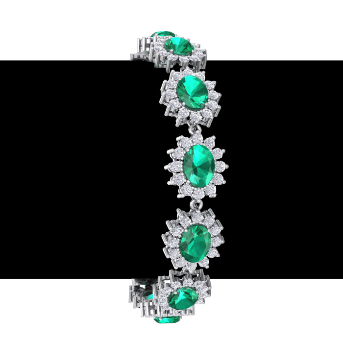 Retrograde Birthstones™ 19 Carat Oval Shape Emerald and Halo Diamond Bracelet In 14 Karat White Gold, 7 Inches