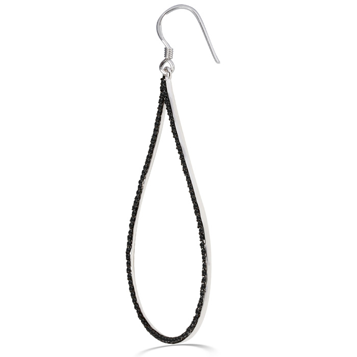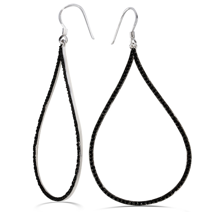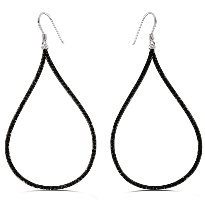 Gorgeous, black diamond earrings perfect for any special occasion! These earrings contain 200 black diamonds total in I3 clarity. Total carat weight is 1.00ct. The earrings have fish hook backs and hang down about 2 inches. The earrings are crafted in solid sterling silver.