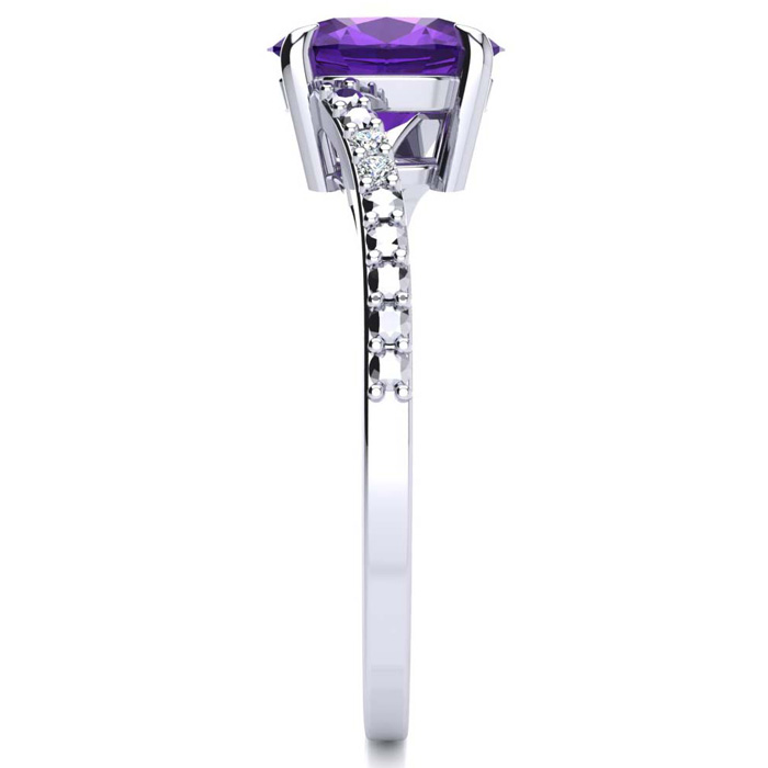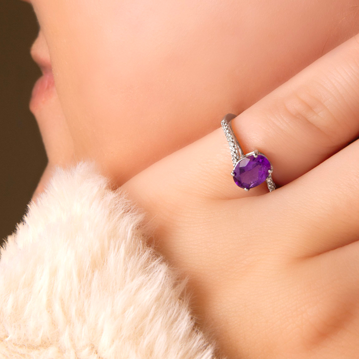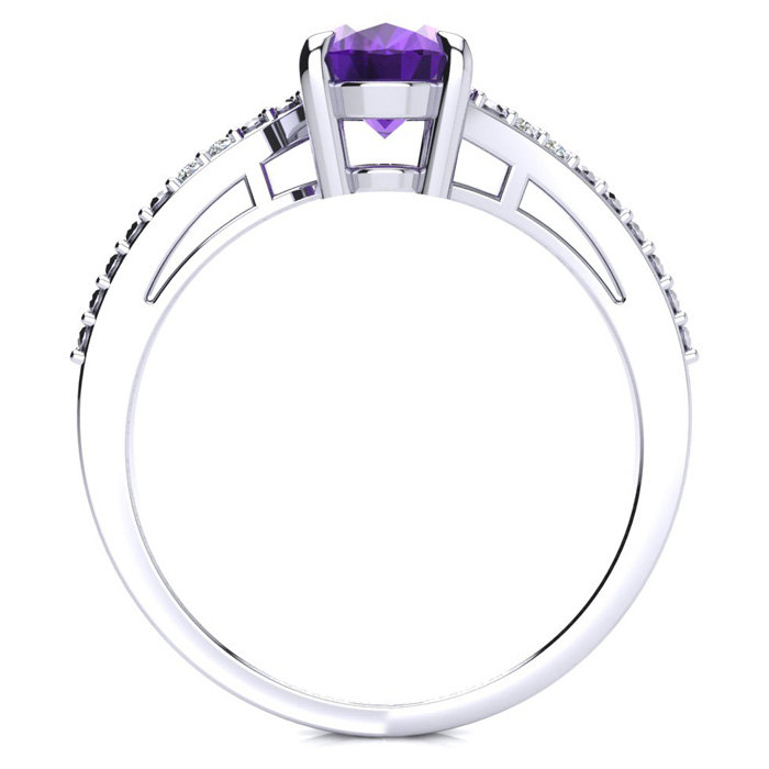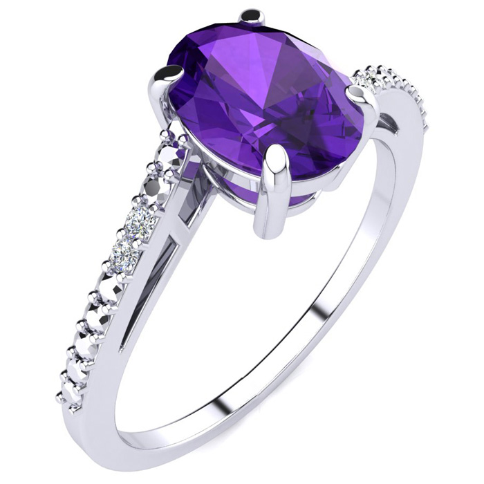 1ct Oval Shape Amethyst and Diamond Ring in 10K White Gold