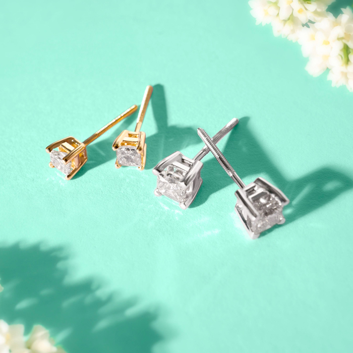 Tired of the round studs? Want an edgier look? Try out the princess cut studs! They are very clear with a clarity grade of I1/I2 and sparkles a lot. The studs are sure to enhance any look!