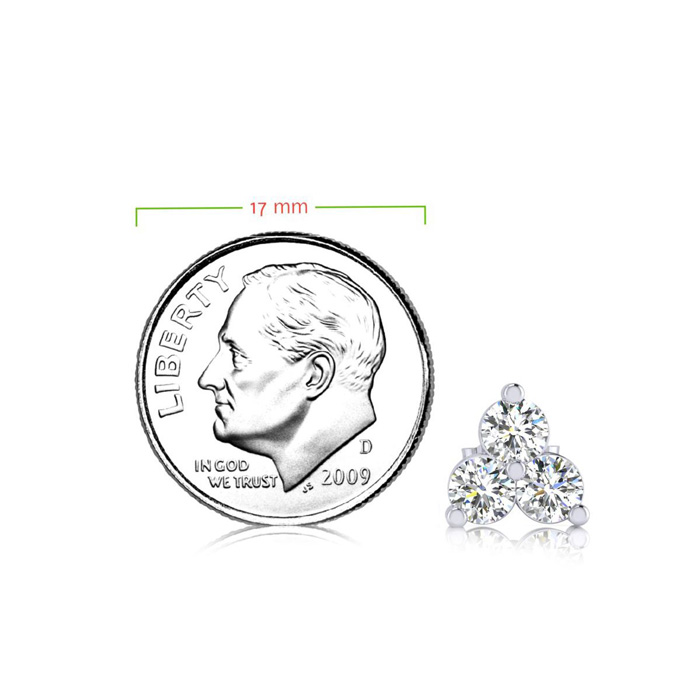1ct Three Diamond Triangle Stud Earrings In 14K White Gold