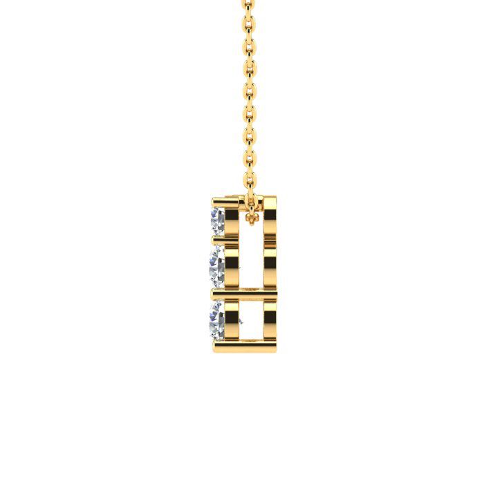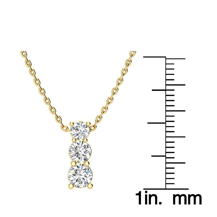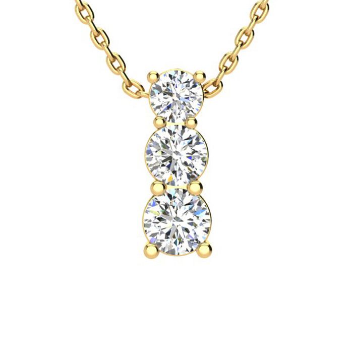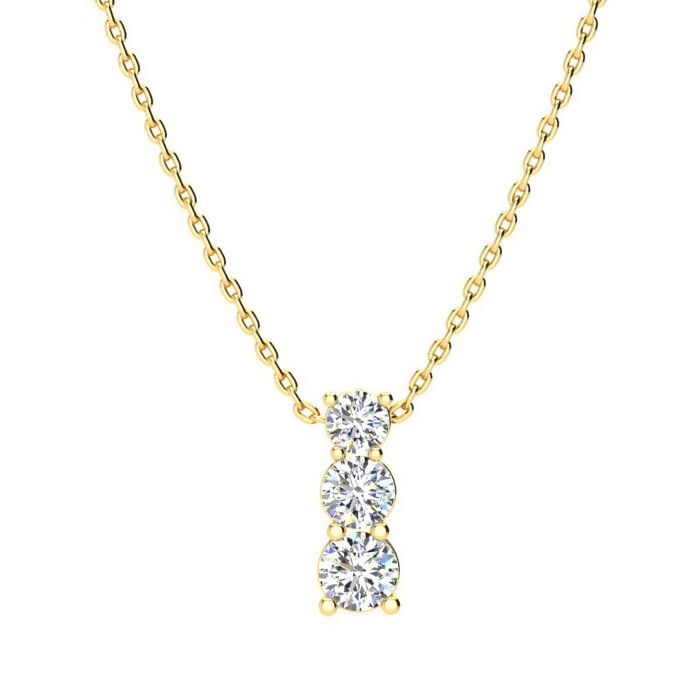1ct Three Stone Natural Diamond Necklace In 14K Yellow Gold, 18 Inches