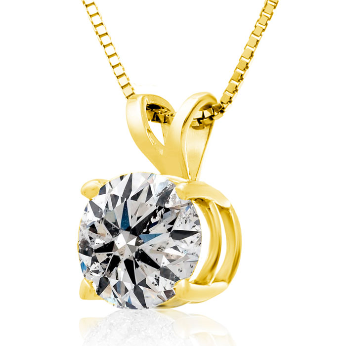 This extremely fine diamond pendant conveys simple style, grace, and elegance with an exquisite diamond solitaire prong set in 14 kt yellow gold. This pendant has a fiery 2 ct. t. w. solitaire diamond.