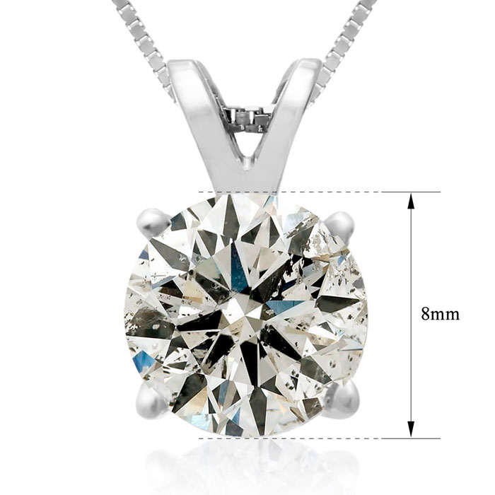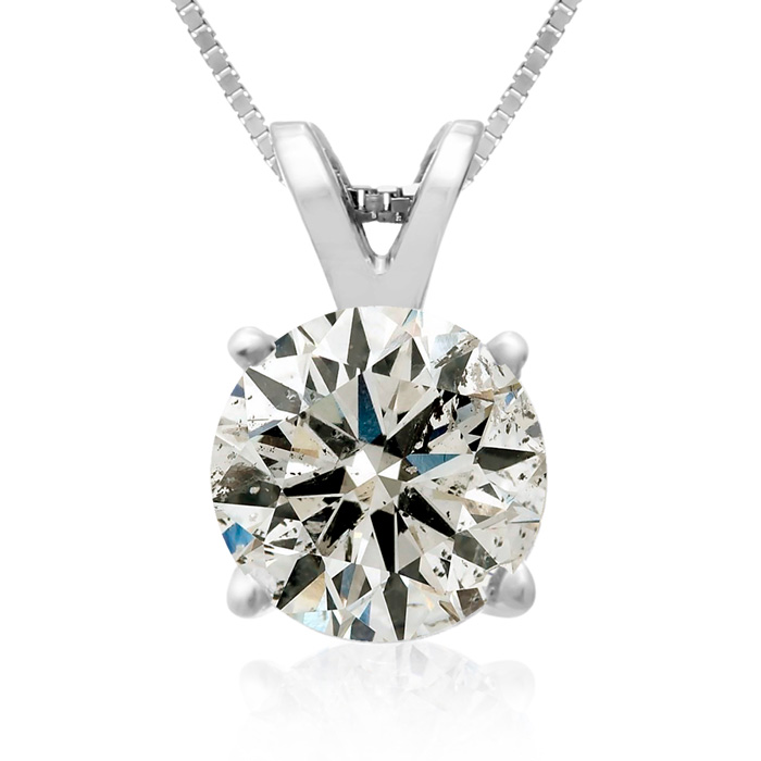This beautiful diamond pendant conveys simple style, grace, and elegance with an exquisite diamond solitaire prong set in 14 kt white gold. This pendant has a fiery 2 ct. t. w. solitaire diamond.