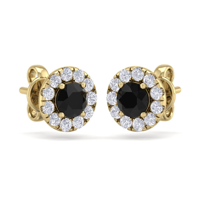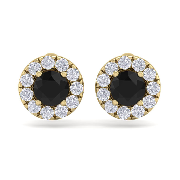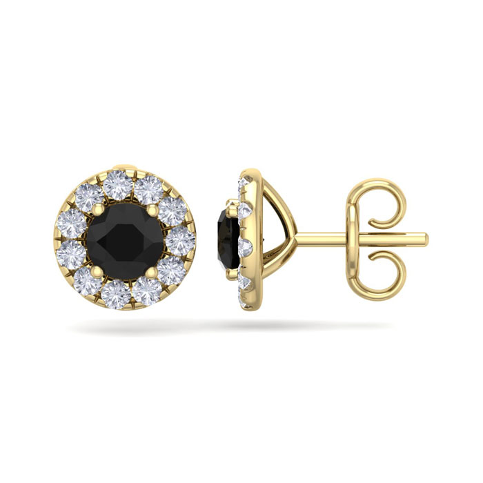 2 1/2 Carat Black Diamond Halo Stud Earrings In 14 Karat Yellow Gold