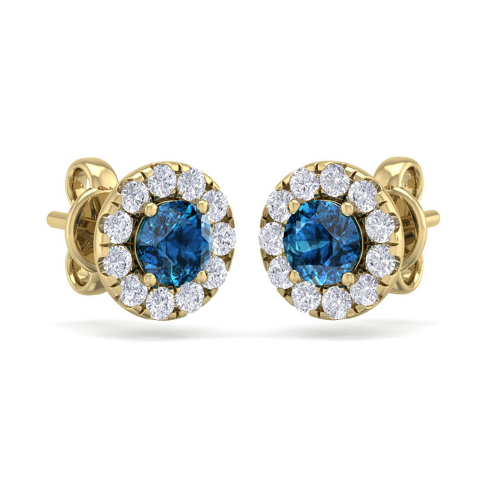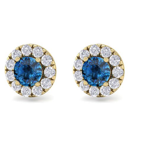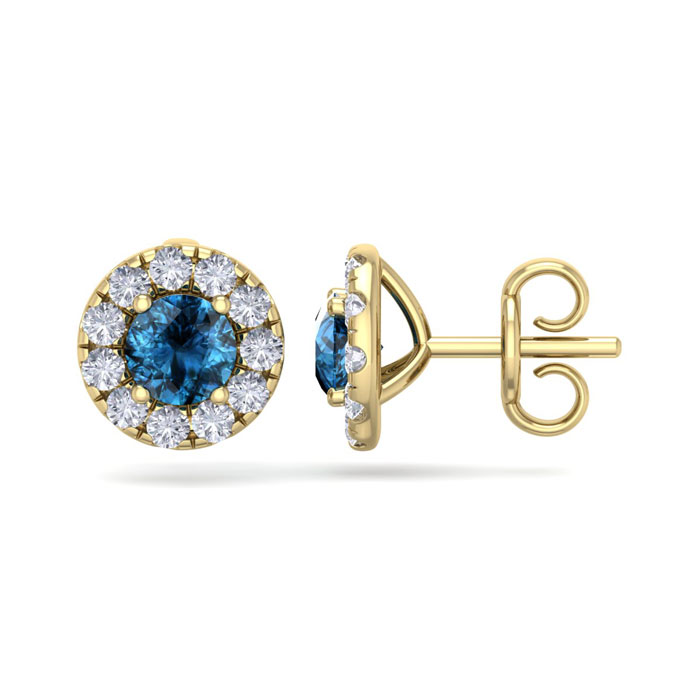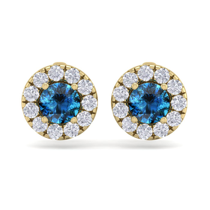 2 1/2 Carat Blue Diamond Halo Stud Earrings In 14 Karat Yellow Gold