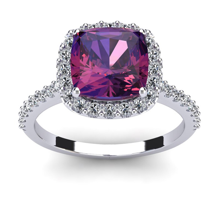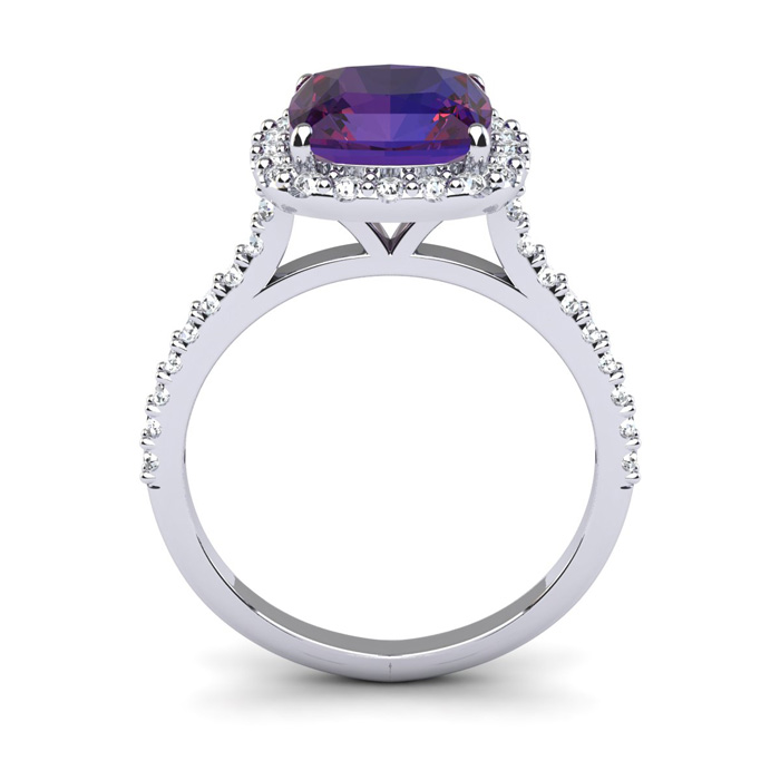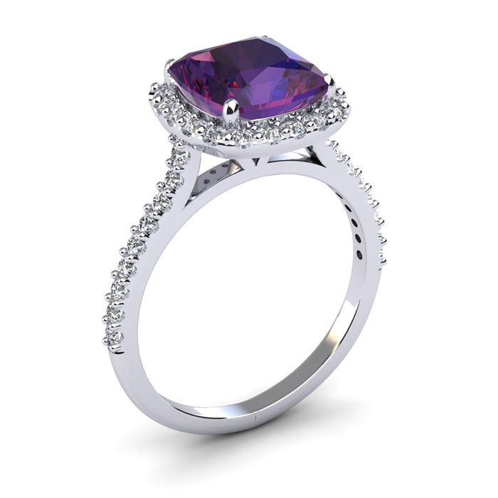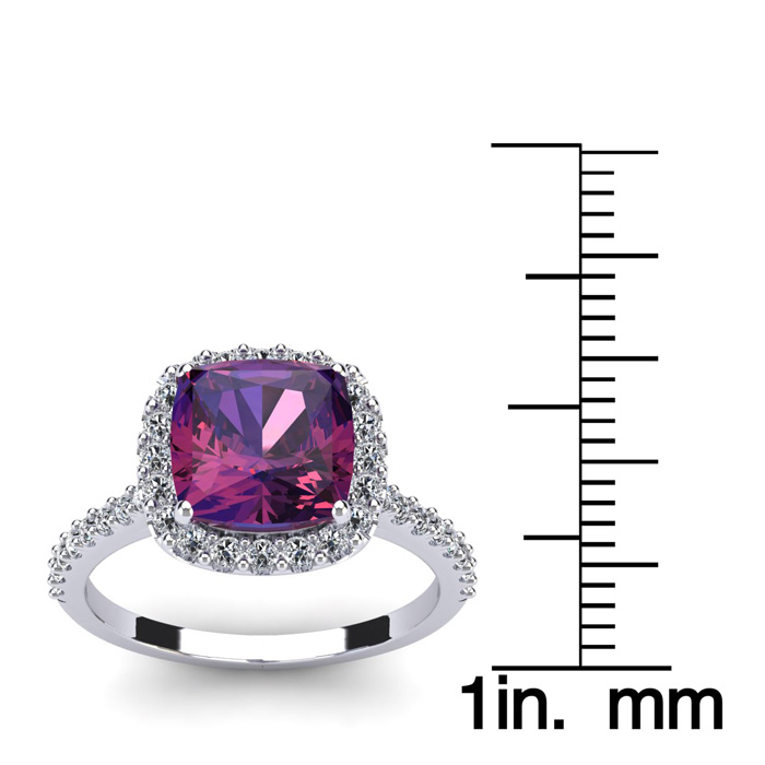 2 1/2 Carat Cushion Cut Amethyst and Halo Diamond Ring In 14K White Gold
