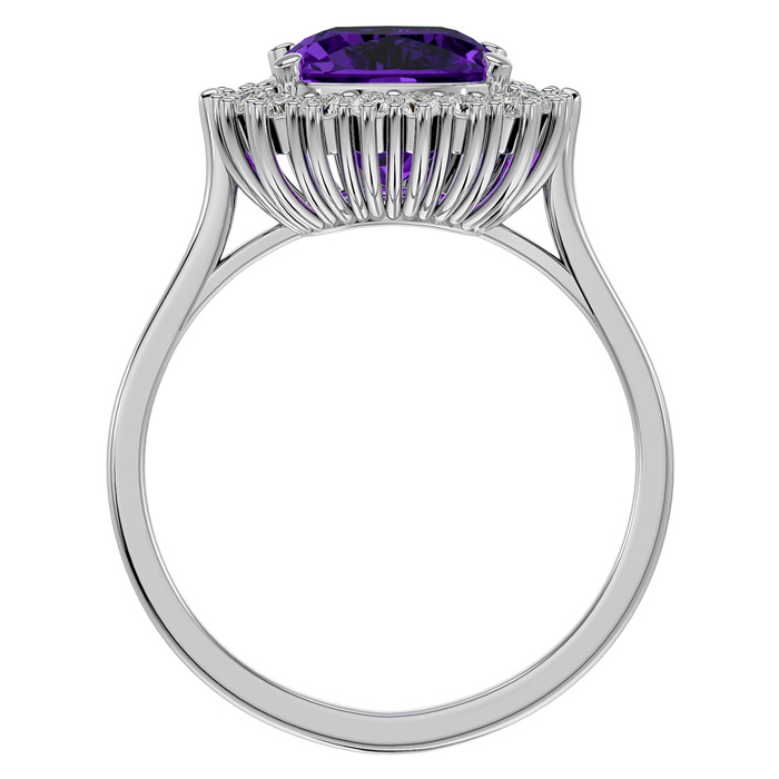 2 1/2 Carat Cushion Cut Amethyst and Halo Diamond Ring In 14K White Gold
