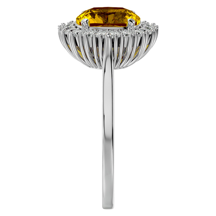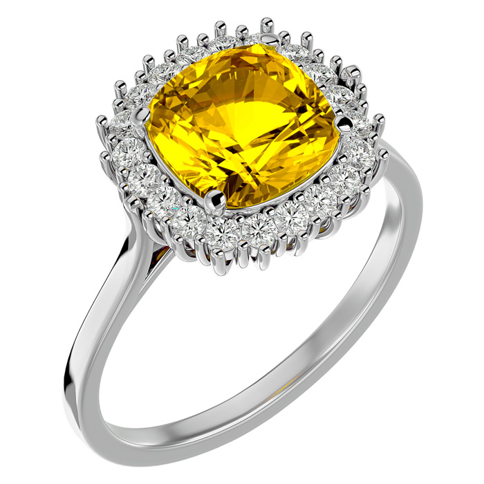 Retrograde Birthstones™ 2 1/2 Carat Cushion Cut Citrine and Halo Diamond Ring In 14K White Gold