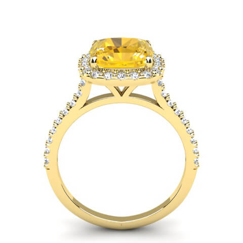 2 1/2 Carat Cushion Cut Citrine and Halo Diamond Ring In 14K Yellow Gold