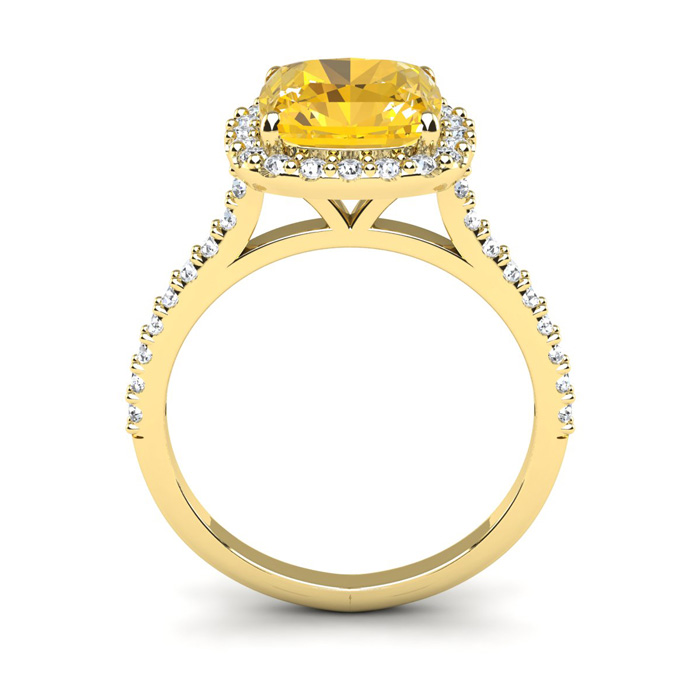 2 1/2 Carat Cushion Cut Citrine and Halo Diamond Ring In 14K Yellow Gold