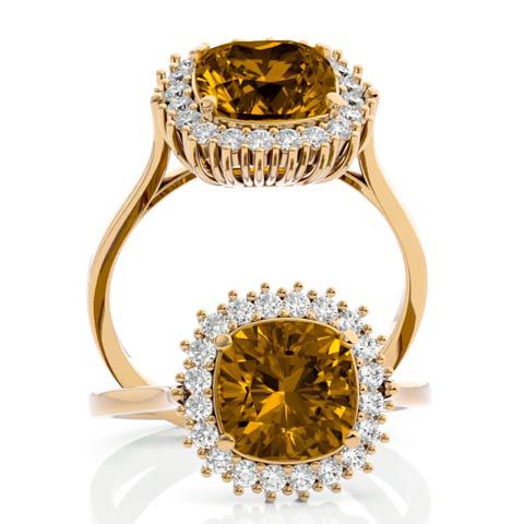 2 1/2 Carat Cushion Cut Citrine and Halo Diamond Ring In 14K Yellow Gold